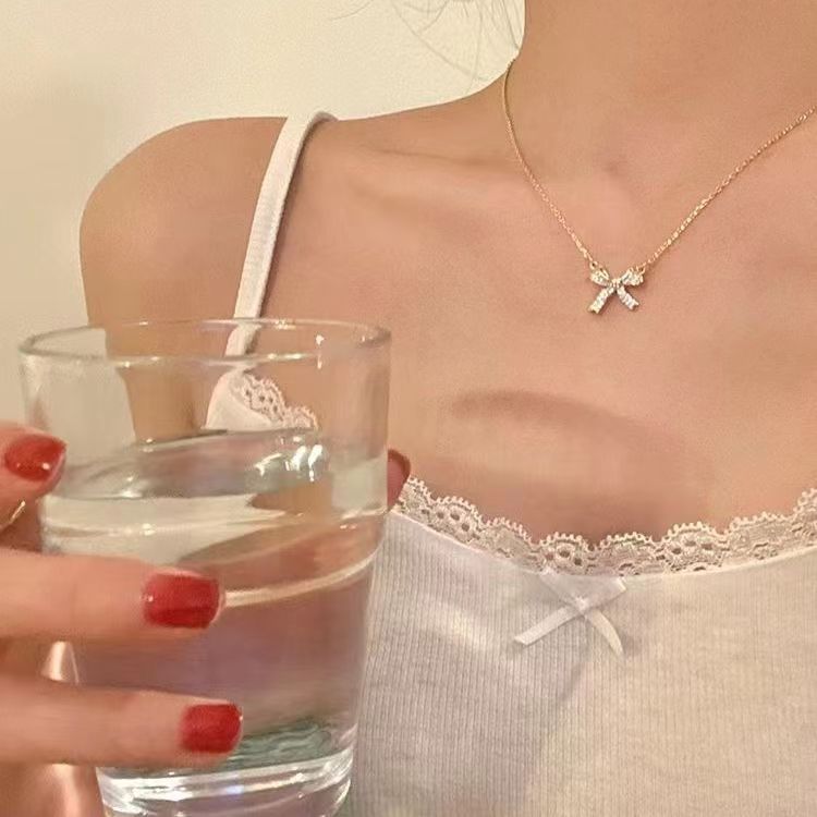 Zarafetin simgesi fiyonk motifi, Gemoria yorumuyla bu ışıltılı kolyede hayat buluyor. Altın rengi zincirle birleşen taşlarla bezenmiş fiyonk detayı, romantik ruhunuzu narin bir dokunuşla yansıtıyor.