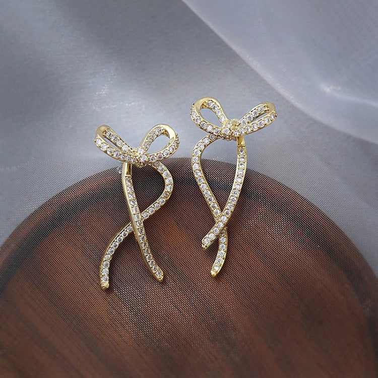 Işıltılı Zarafet – Fiyonk Tasarım Küpe (Altın Rengi)