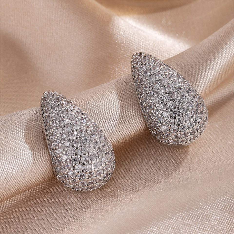 Damla formunun zarafetiyle ışıltının mükemmel buluşması. Gümüş rengi kaplama bu küpe, göz alıcı zirkon taşlarla bezenerek asil ve feminen bir görünüm sunuyor. Gündüz şıklığından gece zarafetine geçişte tek bir dokunuşla fark yaratmak isteyenler için ideal.